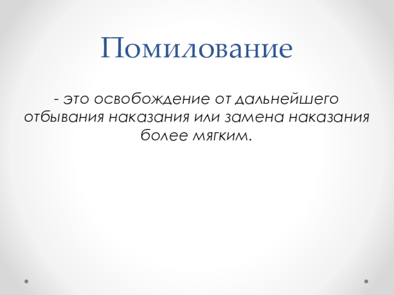 Помилование- это освобождение от дальнейшего отбывания наказания или замена наказания более мягким.