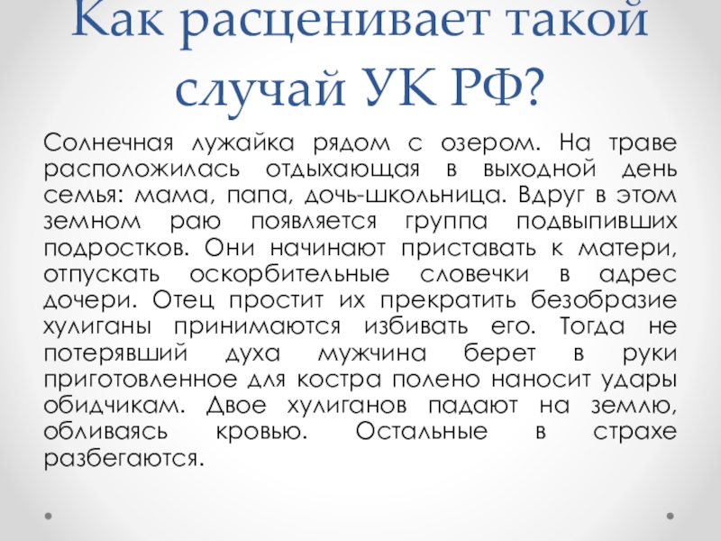 Как расценивает такой случай УК РФ?Солнечная лужайка рядом с озером. На траве расположилась отдыхающая в выходной день