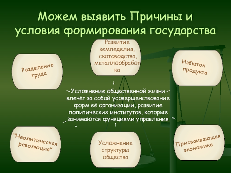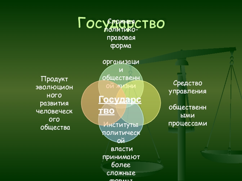 влечёт за собой усовершенствование форм её организации, развитие политических институтов, которые занимаются функциями управления
