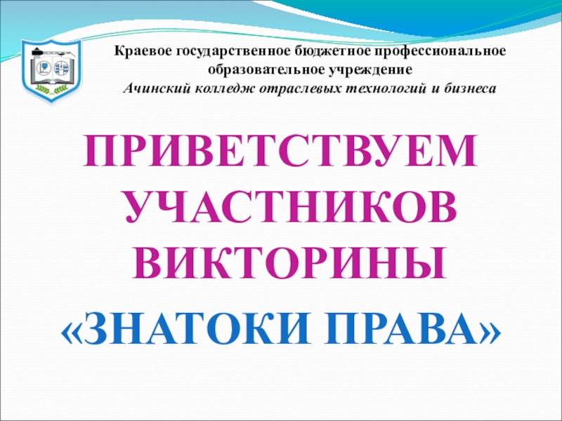 Слайд 1ПРИВЕТСТВУЕМ УЧАСТНИКОВ ВИКТОРИНЫ