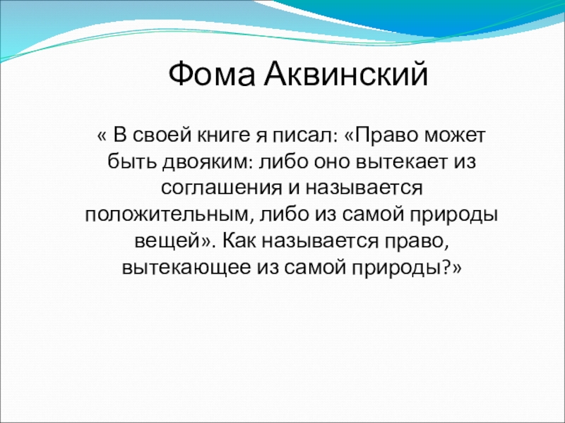 либо оно вытекает из соглашения и называется положительным, либо из самой природы вещей». Как называется право, вытекающее из самой природы?»
