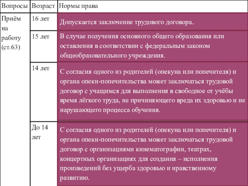 С согласия одного из родителей (опекуна или попечителя) и органа опеки-попечительства может заключаться трудовой договор с учащимся для выполнения в свободное от учёбы время лёгкого труда, не причиняющего вреда их здоровью и не нарушающего процесса обучения.