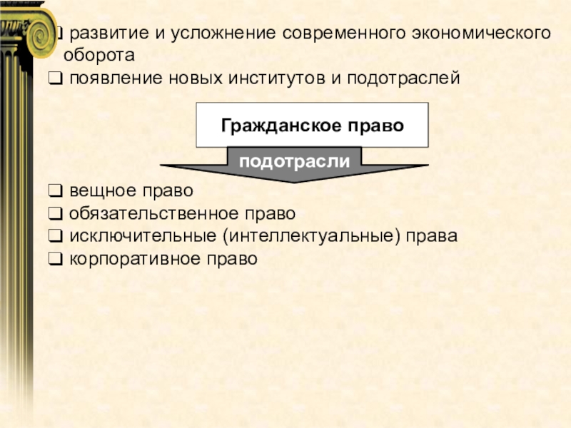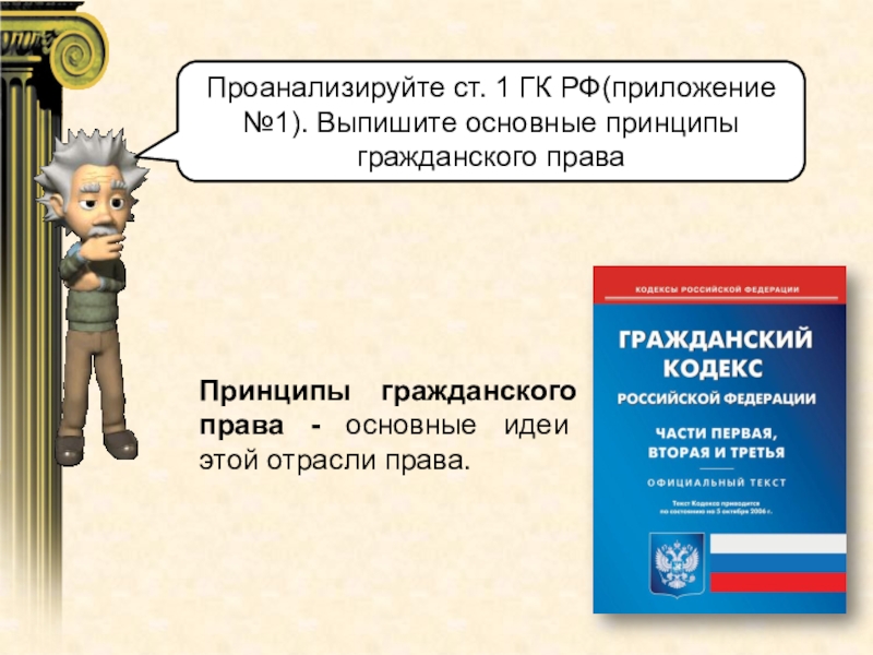 заложены основы современного гражданского права: сформирована позиция относительно статуса физических лиц, собственности, договорные основы