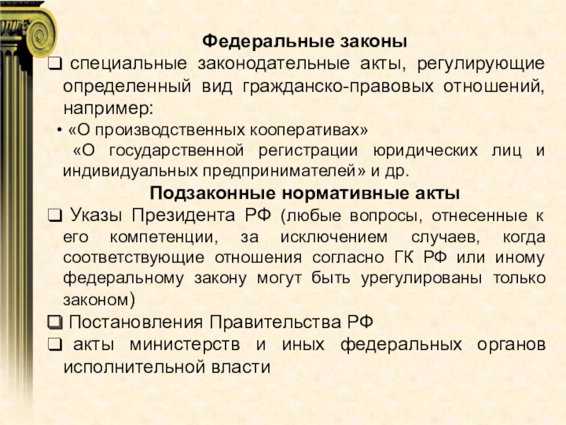ГК РФ и принятые в соответствии с ним федеральные законы.