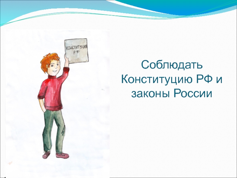 Слайд 36Соблюдать Конституцию РФ и законы России