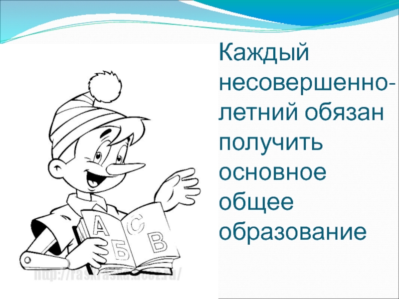 Слайд 32Каждый несовершенно-летний обязан получить основное общее образование