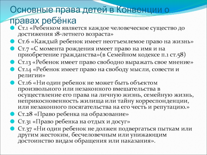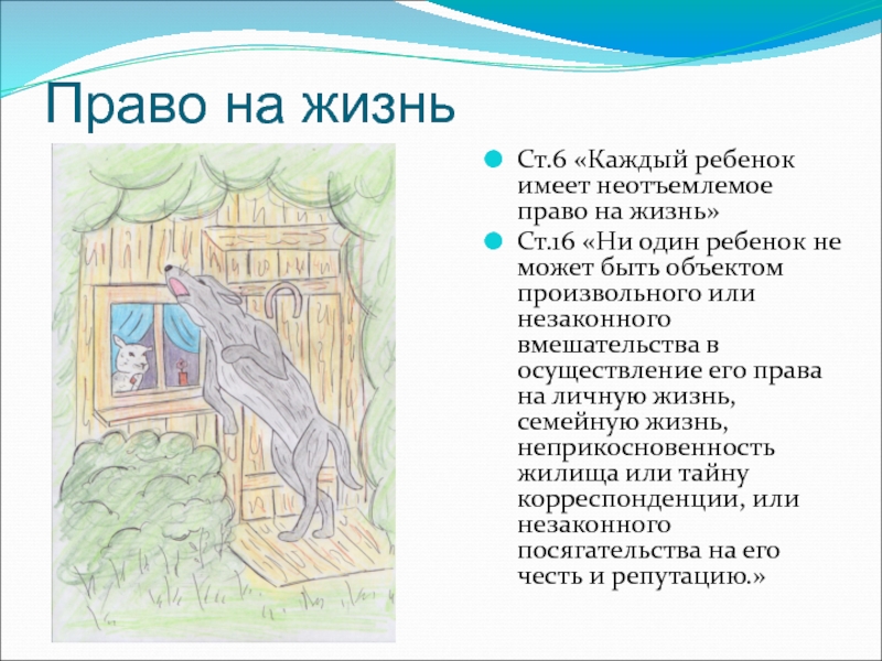 Ст.6 «Каждый ребенок имеет неотъемлемое право на жизнь»