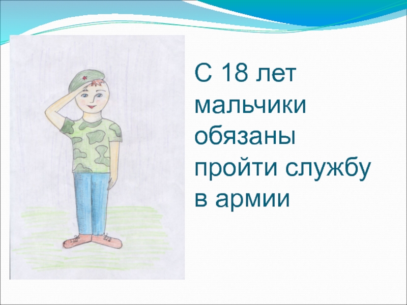 Слайд 37С 18 лет мальчики обязаны пройти службу в армии