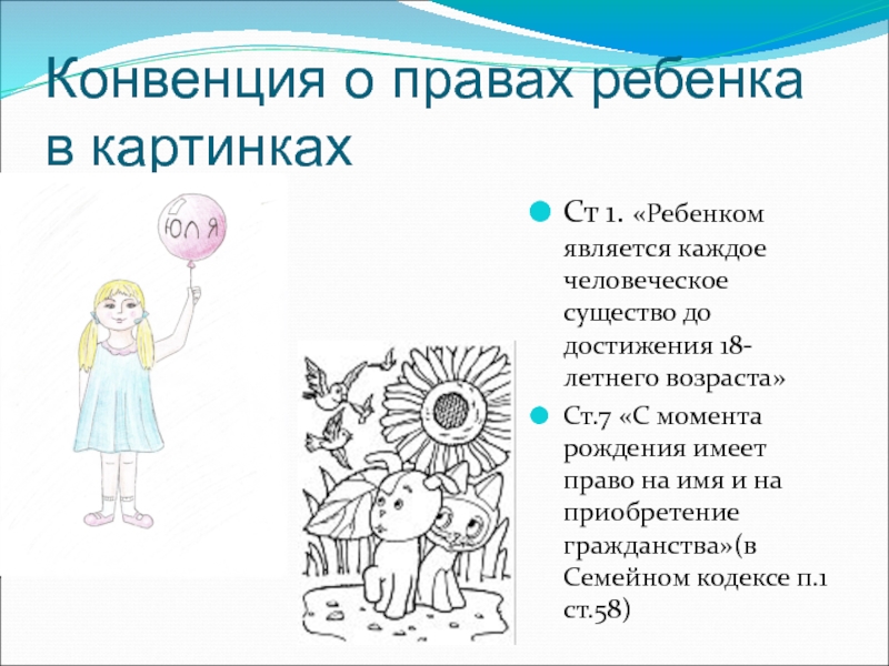 Ст.7 «С момента рождения имеет право на имя и на приобретение гражданства»(в Семейном кодексе п.1 ст.58)