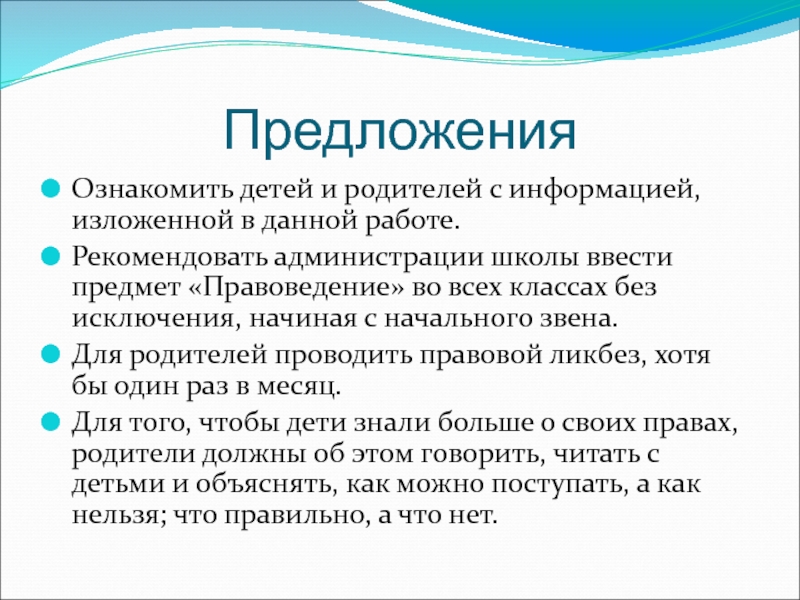 школы ввести предмет «Правоведение» во всех классах без исключения, начиная с начального звена.
