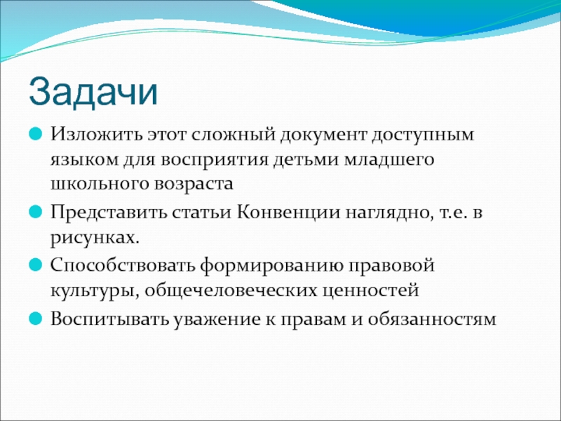 Слайд 3Цель- познакомить младших школьников с Конвенцией о правах ребенка
