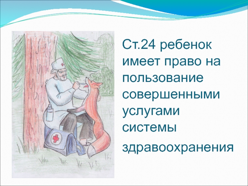 Слайд 25Ст.24 ребенок имеет право на пользование совершенными услугами системы здравоохранения