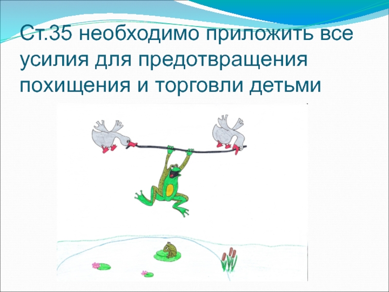 Слайд 30Ст.35 необходимо приложить все усилия для предотвращения похищения и торговли детьми