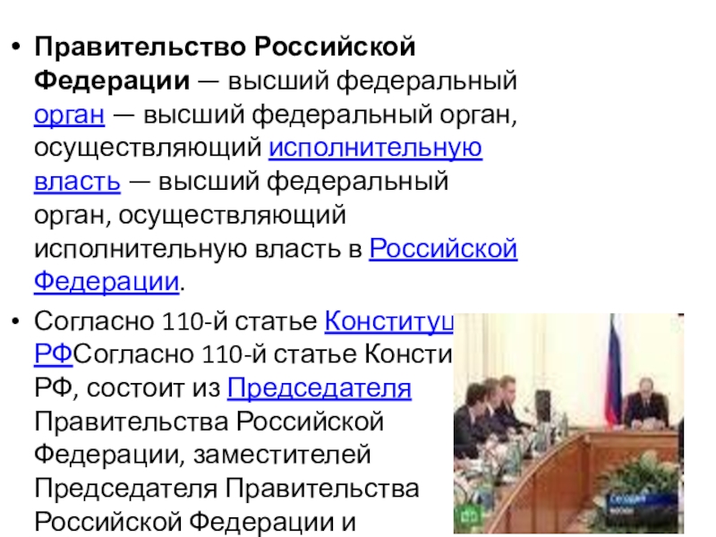 власть — высший федеральный орган, осуществляющий исполнительную власть в Российской Федерации.