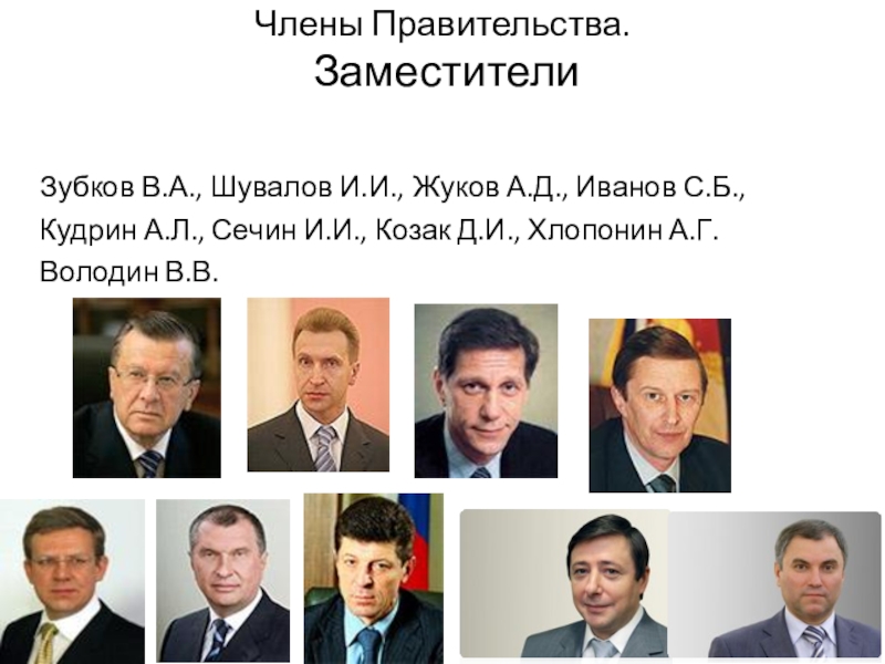 Согласно 110-й статье Конституции РФСогласно 110-й статье Конституции РФ, состоит из Председателя Правительства Российской Федерации, заместителей Председателя Правительства Российской Федерации и федеральных министров.