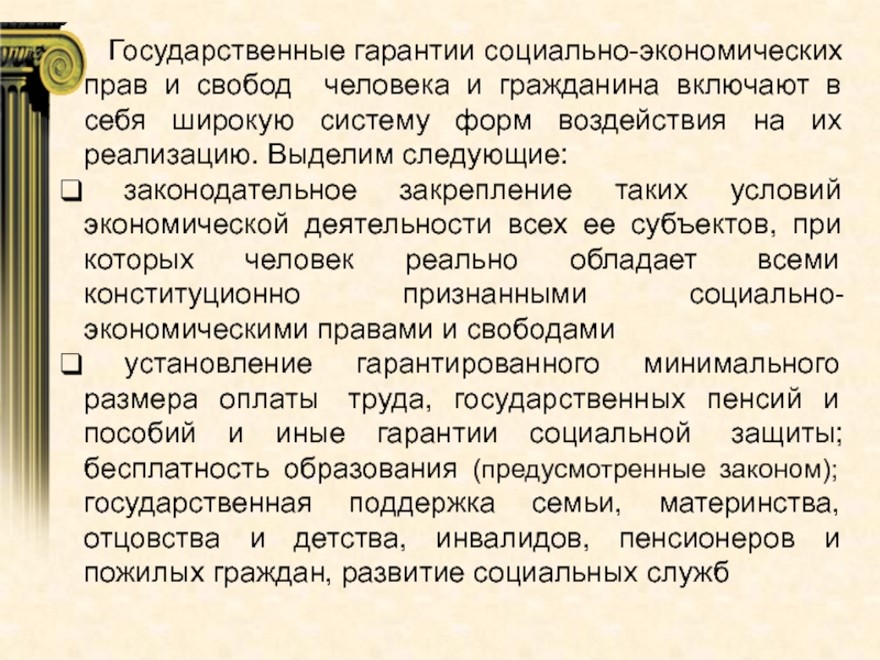 Данные права составляют своего рода конституцию социального государства - гаранта достойного уровня и высокого качества жизни граждан.