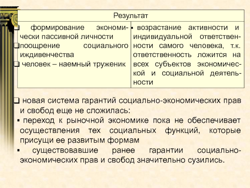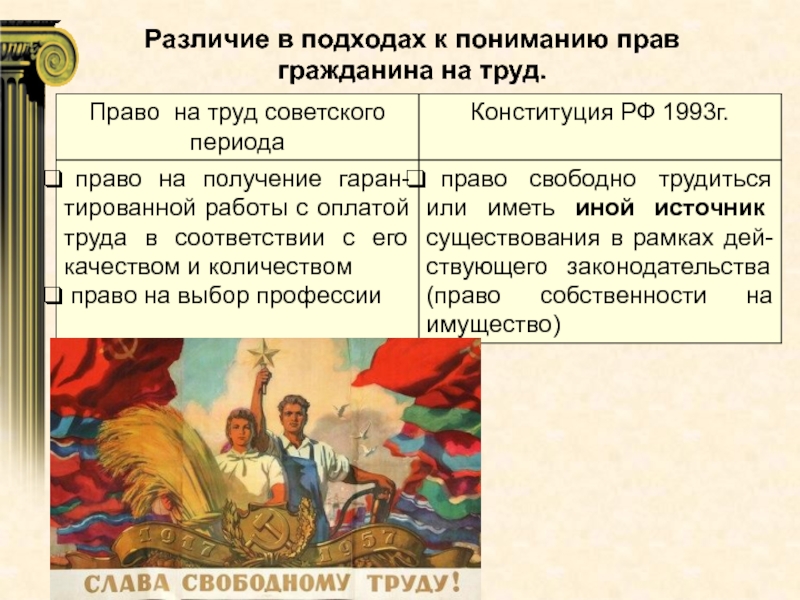 Конституция РФ 1993г., по сравнению с основными законами советского типа, исходит из принципиально иной идеологии при закреплении социально-экономических прав и свобод.