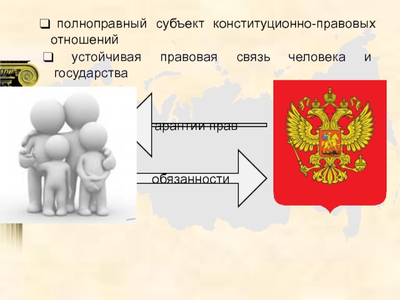 Гражданство – это устойчивая связь человека и государства, которая заключается в наличии взаимных прав, обязанностей и ответственности.