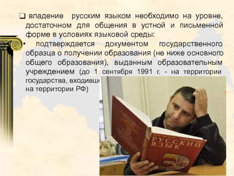 Слайд 21 владение русским языком необходимо на уровне, достаточном для общения в