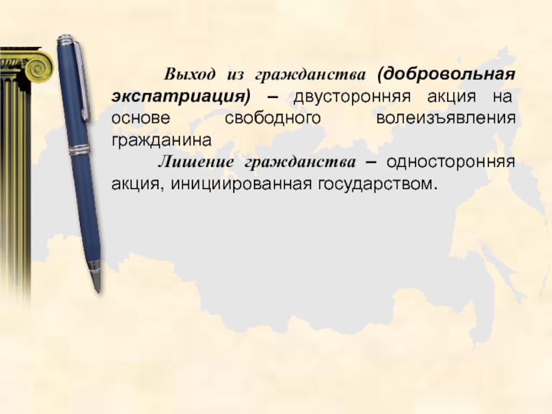 Слайд 34 Выход из гражданства (добровольная экспатриация) – двусторонняя акция
