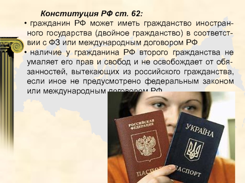Слайд 29 Конституция РФ ст. 62: