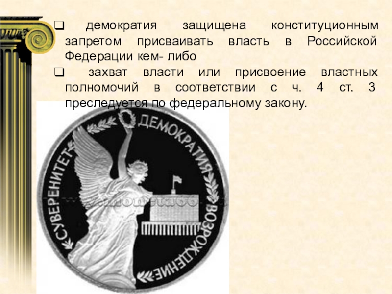 Слайд 17 демократия защищена конституционным запретом присваивать власть в Российской Федерации кем-