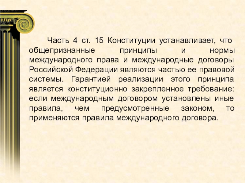 Слайд 33 Часть 4 ст. 15 Конституции устанавливает, что общепризнанные