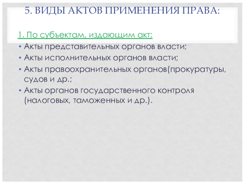 Слайд 135. ВИДЫ АКТОВ ПРИМЕНЕНИЯ ПРАВА: