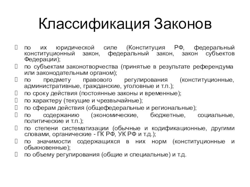 федеральные законы - это акты текущего законодательства, посвященные различным сторонам социально-экономической, политической и духовной жизни общества (например, Гражданский кодекс РФ, Уголовный кодекс РФ, Семейный кодекс РФ и пр.)