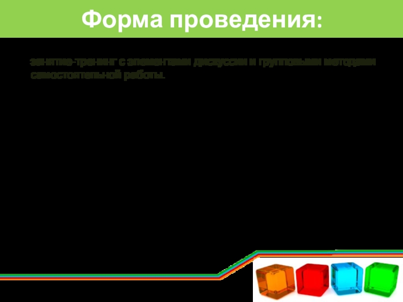 занятие-тренинг с элементами дискуссии и групповыми методами самостоятельной работы.
