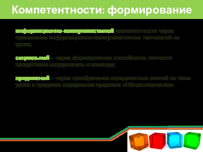 информационно-коммуникативной компетентности через применение информационно-коммуникативных технологий на уроке;