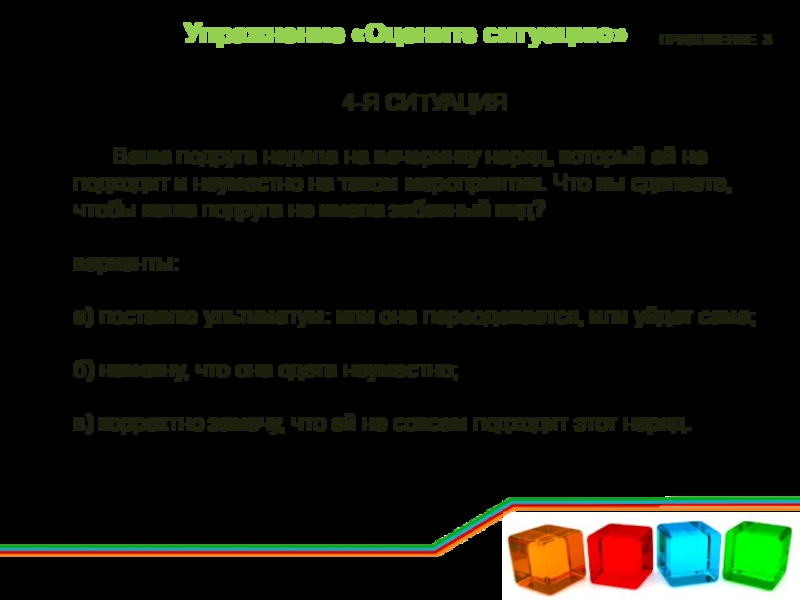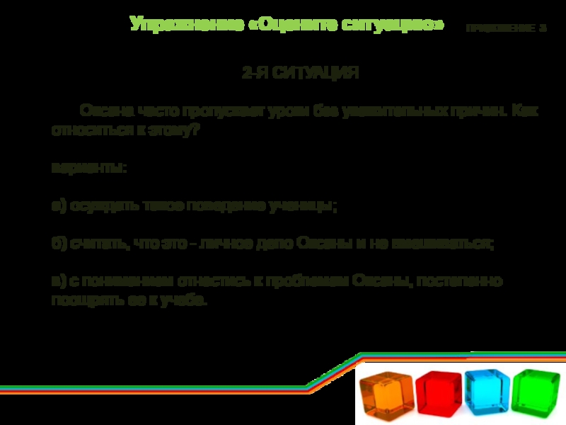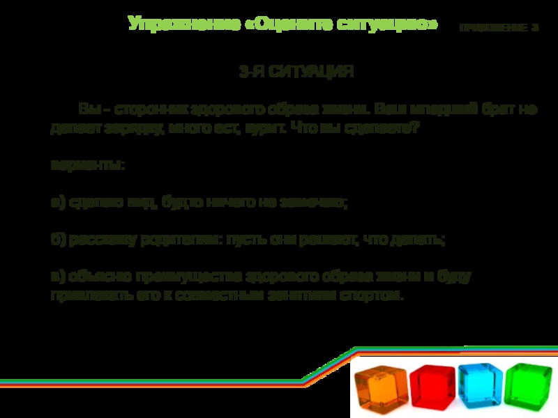 Проанализируйте в группах ситуации (см. Приложение 3), выберите вариант