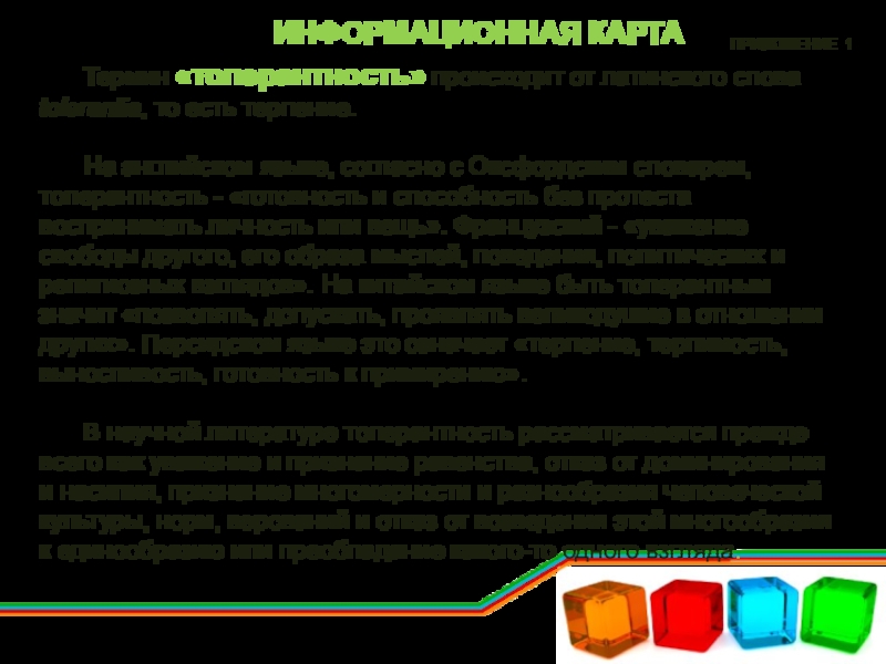 основе представленной информации, высказываний известных людей сформулируйте свое определение понятия «толерантность» (см. Приложение 1).