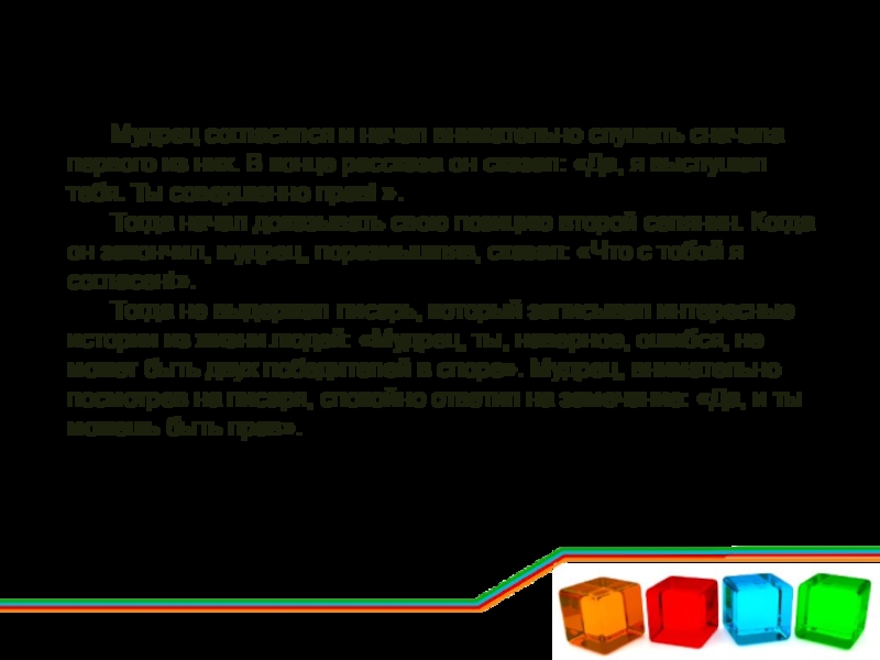 Слайд 9 Мудрец согласился и начал внимательно слушать сначала первого из них. В