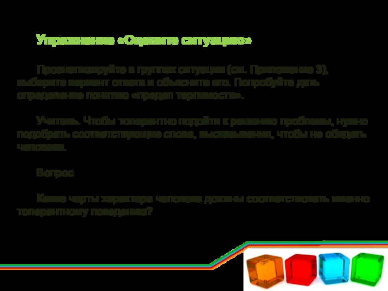 Учитель. Чтобы толерантно подойти к решению проблемы, нужно подобрать соответствующие слова, высказывания, чтобы не обидеть человека.