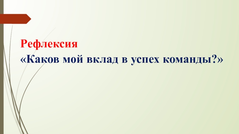 Слайд 18 Рефлексия «Каков мой вклад в успех команды?»