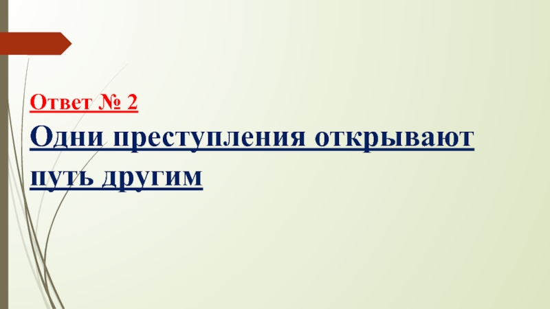 Слайд 10Ответ № 2 Одни преступления открывают путь другим