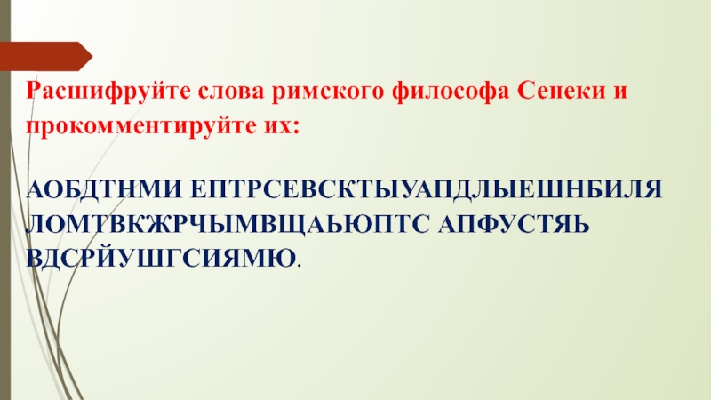 Слайд 8 Расшифруйте слова римского философа Сенеки и прокомментируйте их: АОБДТНМИ ЕПТРСЕВСКТЫУАПДЛЫЕШНБИЛЯ ЛОМТВКЖРЧЫМВЩАЬЮПТС АПФУСТЯЬ