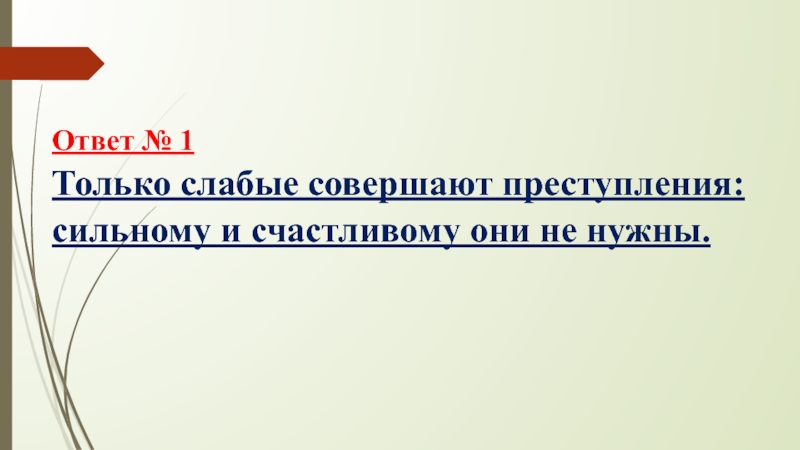 Слайд 9 Ответ № 1 Только слабые совершают преступления: сильному и счастливому они не