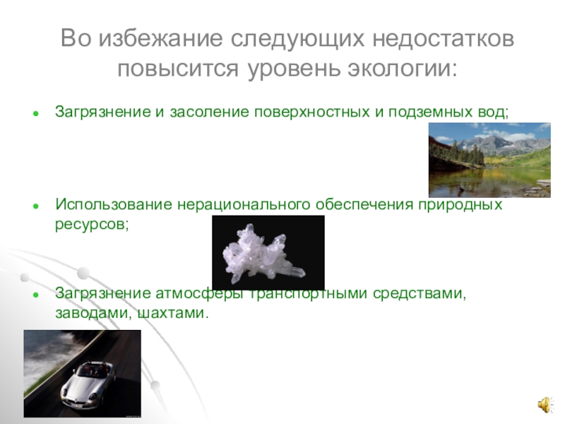 Слайд 5Во избежание следующих недостатков повысится уровень экологии: