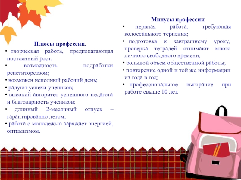 подготовка к завтрашнему уроку, проверка тетрадей отнимают много личного свободного времени;