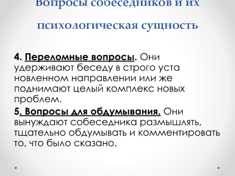 4. Переломные вопросы. Они удерживают беседу в строго