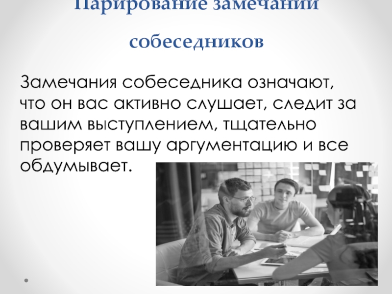 Слайд 14Парирование замечаний собеседников