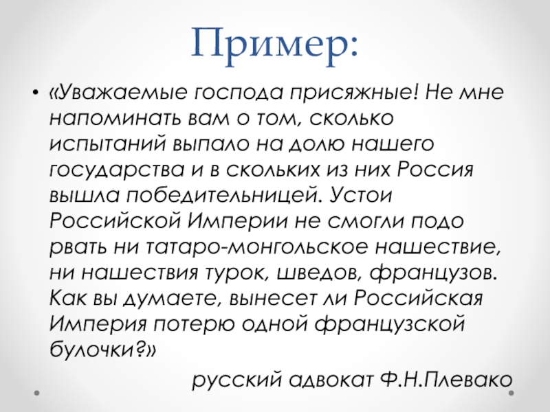 «Уважаемые господа присяжные! Не мне напоминать вам о том, сколько испытаний