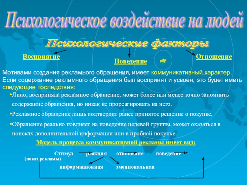 Лицо, восприняла рекламное обращение, может более или менее точно запомнить содержание обращения, но никак не прореагировать на него.