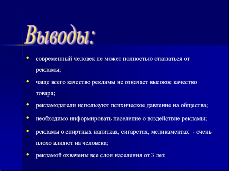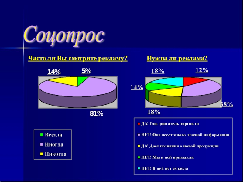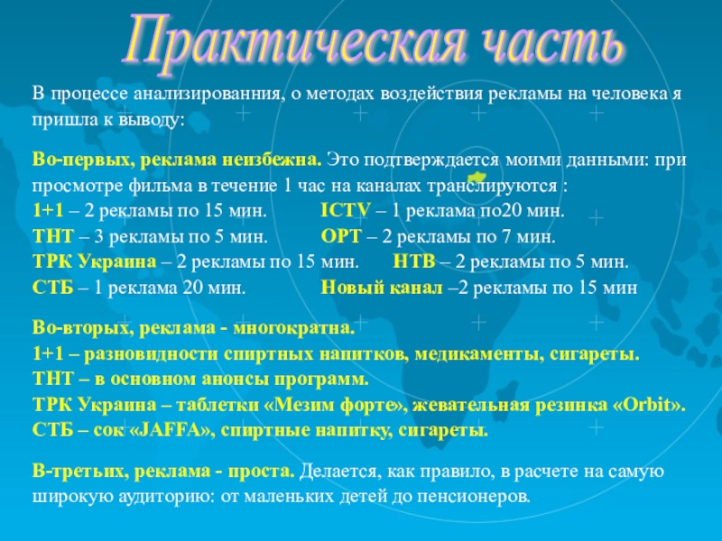 В настоящее время все большая часть людей склоняется к мысли, что реклама является крайне необходимой. Но вместе с тем, эта тема продолжает оставаться довольно слабо разработанной и скупо представленной в литературе. Я попробовала провести свое личное исследование о рекламе и ее воздействие на человека.