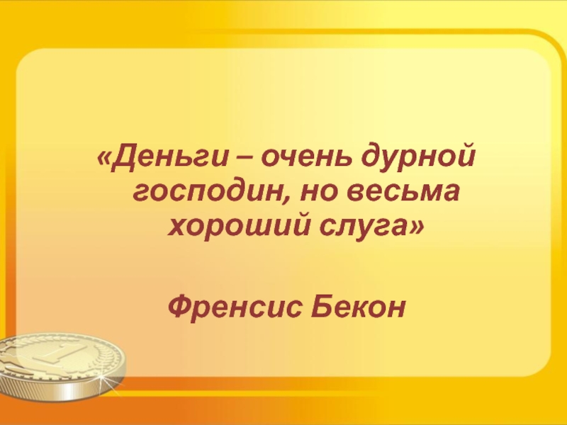 «Деньги – очень дурной господин, но весьма хороший слуга» Френсис Бекон