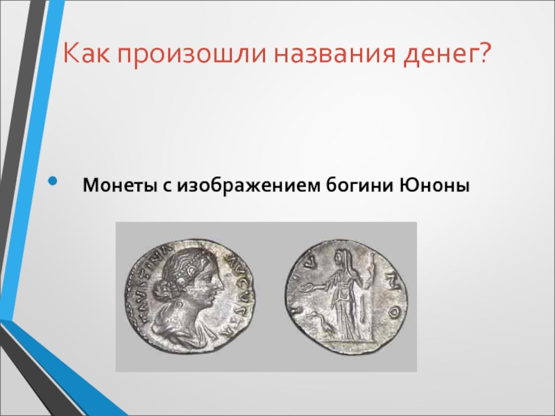 Как произошли названия денег?   Монеты с изображением богини Юноны