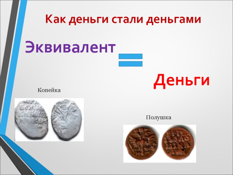 Как деньги стали деньгамиЭквивалент ДеньгиКопейкаПолушка