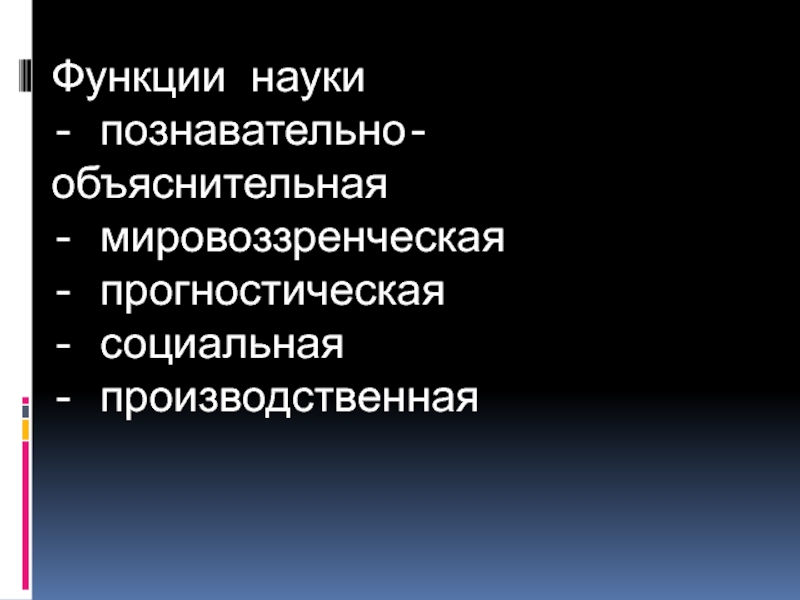 Функции науки - познавательно-объяснительная - мировоззренческая  - прогностическая - социальная - производственная